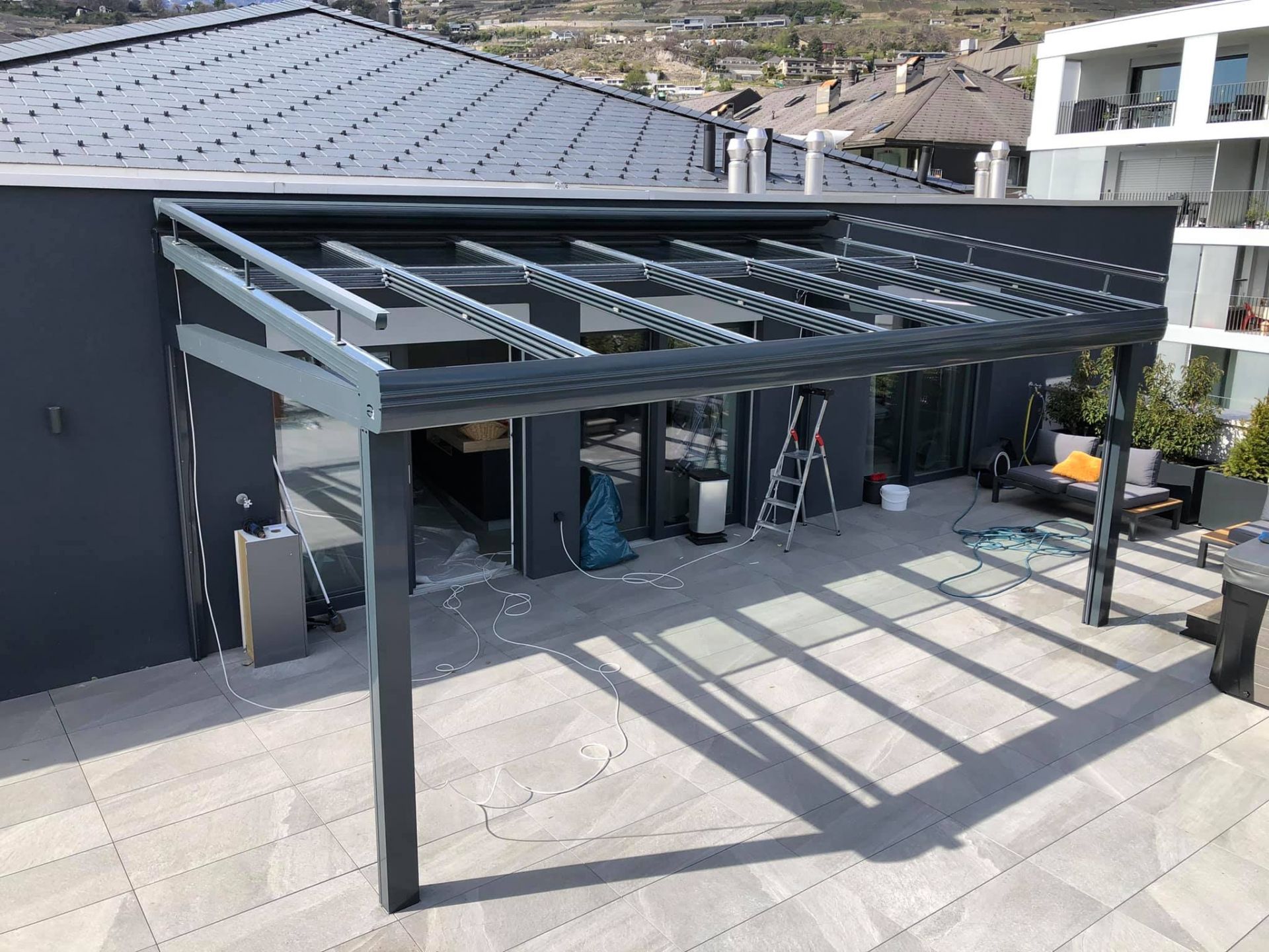 Pergola à toiture fixe ou rétractable ,en toile ,verre ou panneau aluminium isolé ou même un mixte de plusieurs choix.